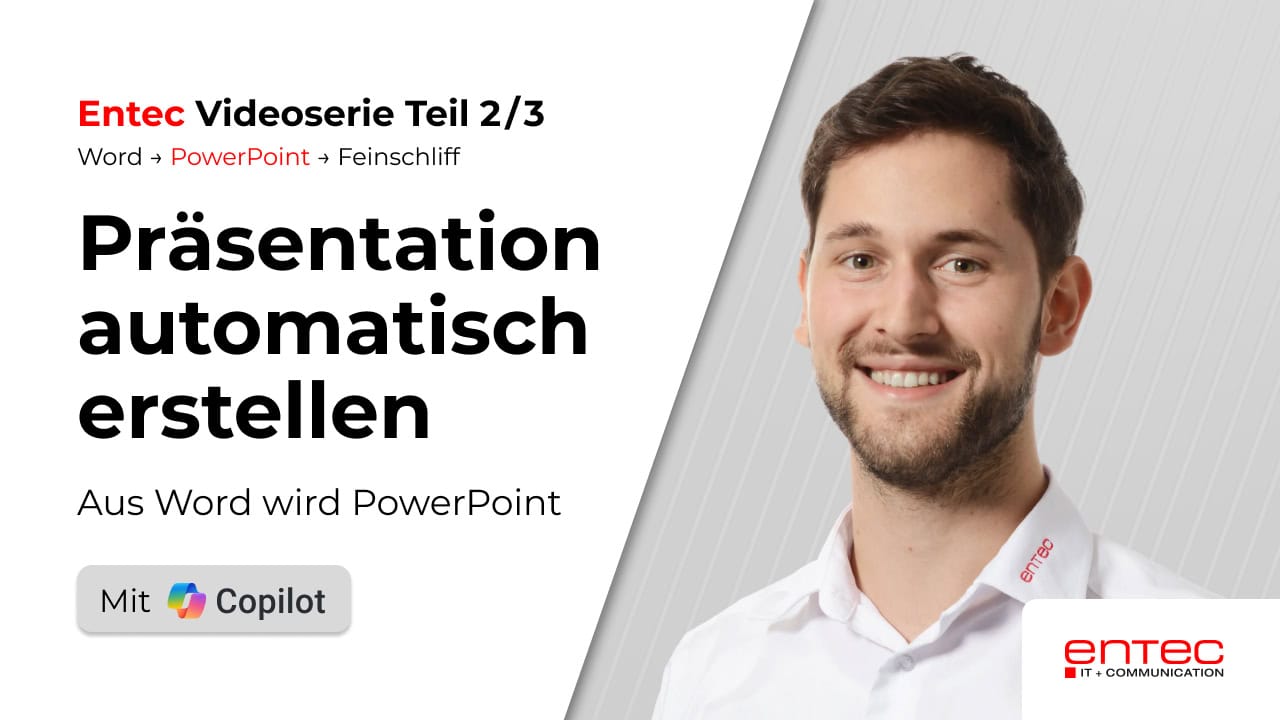 Präsentationen entstehen in vielen KMU unter Zeitdruck, obwohl die Inhalte bereits vorhanden sind. Copilot kann dabei helfen, diesen Übergang von Dokument zu Präsentation strukturierter und nachvollziehbarer zu gestalten.